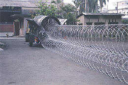 setting up, forming a barricading wall. With its razor-sharp ends,
