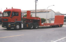 《低平床面,後斜油壓機械板台》 標準型,可領牌,免申請通行證,各種機械運輸,40T級